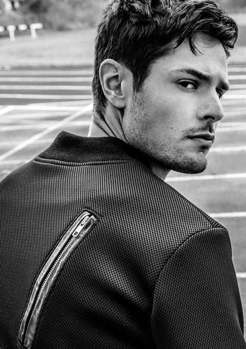 Featuring: MNDATORY Black Technical Knit Bomber $690 Credit: Photographer: Lore Photography Stylist: Brett Bowen Model: Anthony Selemidis View Original Article